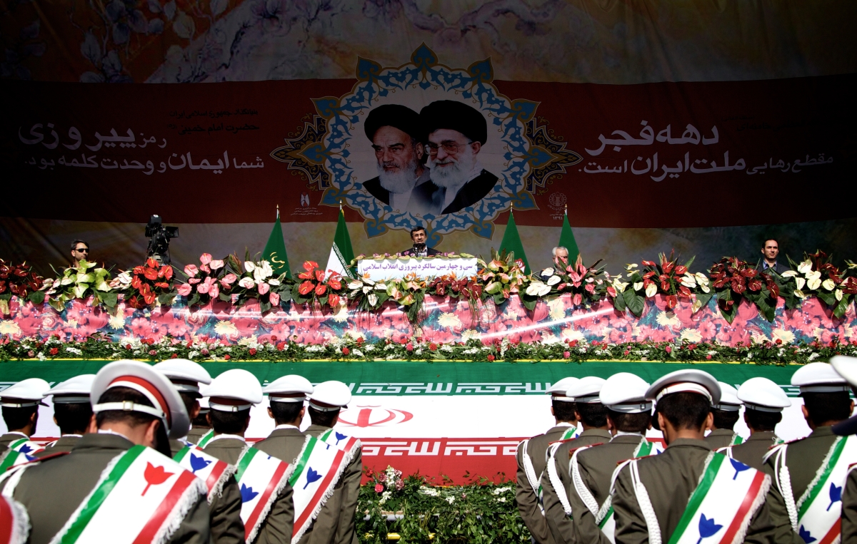 [caption id="attachment_55240861" align="aligncenter" width="620"]Iranian President Mahmoud Ahmadinejad (C) delivers a speech as he stands under portraits of late founder of Islamic Republic, Ayatollah Ruhollah Khomeini (L) and supreme leader, Ayatollah Ali khamenei (R) during a rally in Tehran's Azadi Square to mark the 34th anniversary of the Islamic revolution on February 10, 2013 (BEHROUZ MEHRI/AFP/Getty Images) Iranian President Mahmoud Ahmadinejad (C) delivers a speech as he stands under portraits of late founder of Islamic Republic, Ayatollah Ruhollah Khomeini (L) and supreme leader, Ayatollah Ali khamenei (R) during a rally in Tehran's Azadi Square to mark the 34th anniversary of the Islamic revolution on February 10, 2013 (BEHROUZ MEHRI/AFP/Getty Images)[/caption]Freedom never comes free. Long before this concept was dissected by existentialists, Iranians have been catching glimpses of it in the mirror of their history. So when Ayatollah Khamenei says that Iran holds the “freest election in the world,” this rhetoric leads Iranian citizens to ask for its price.