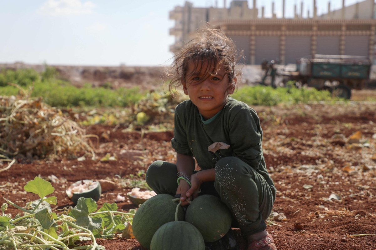 A girl works in a watermelon field in the rebel-held town of al-Dana in the northwestern Idlib province, on September 18, 2023, as the new school year resumes in Syria.
