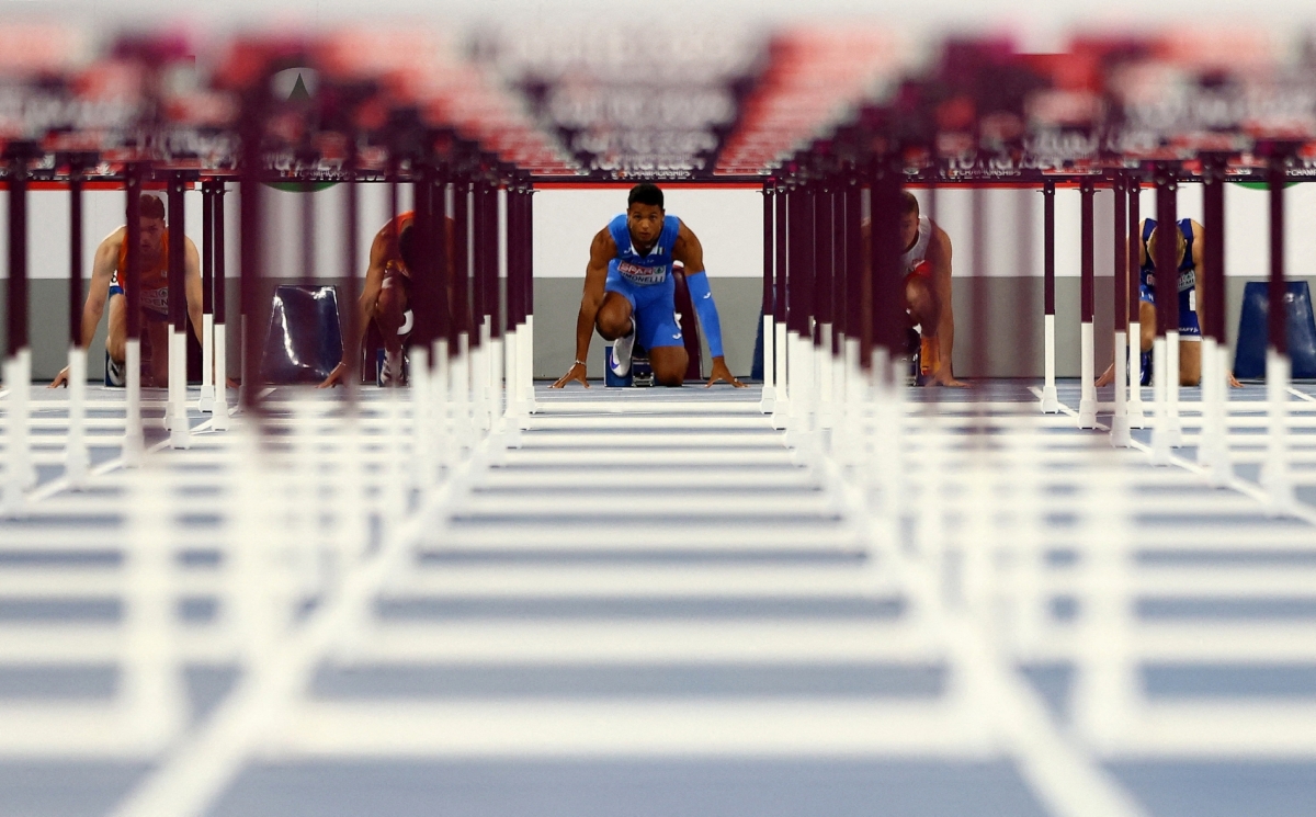 Italy's Lorenzo Simonelli at the start of the men's 110m hurdles of the European Athletics Championships at Stadio Olimpico, Rome, Italy, on June 8, 2024.