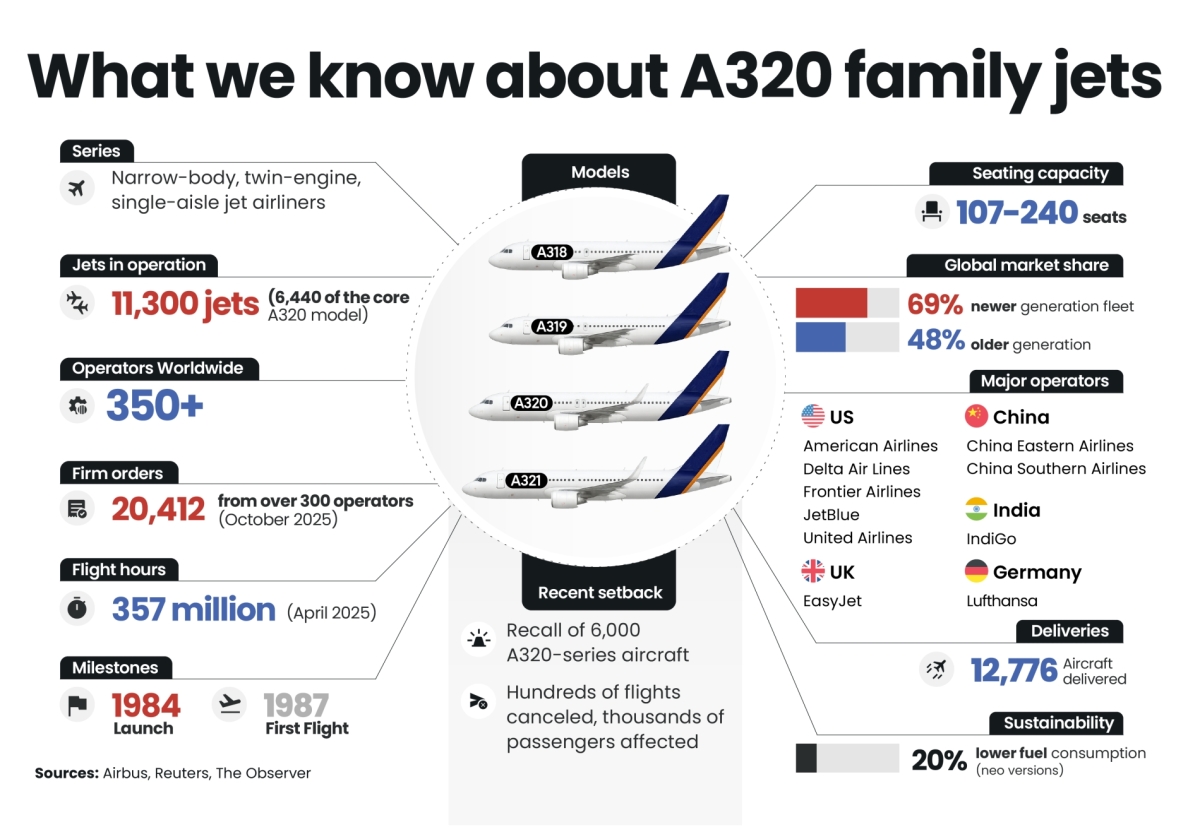 Yet the recent recall of 6,000 A320-series jets marks a major disruption for airlines worldwide. Beyond operational delays and logistical challenges, the move raises potential safety concerns and could undermine passenger confidence. At the time Airbus issued its safety bulletin, roughly 3,000 A320-family jets were in the air.
