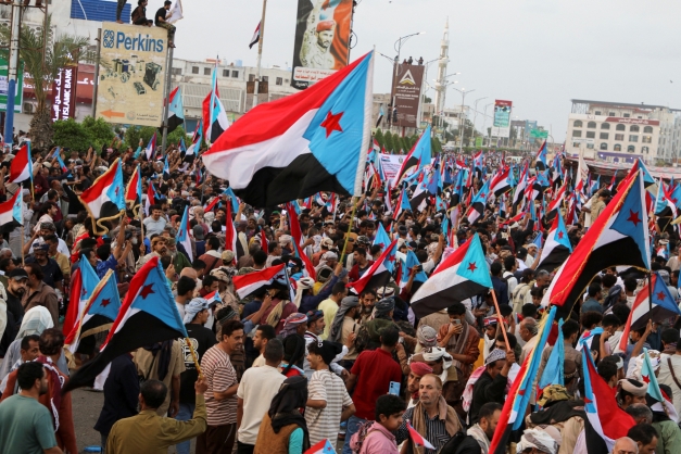 A crowd of people at a march organized by the Southern Transitional Council in Aden, Yemen, on 21 December 2025.