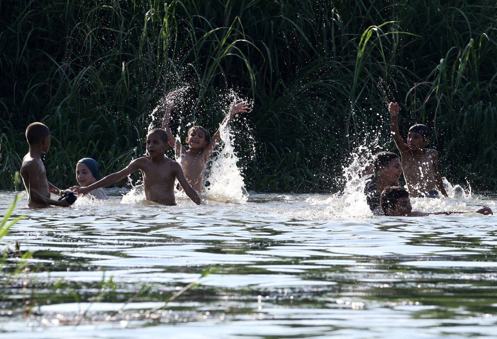 Boys swim in the Nile River amid a heatwave in El Qanater El Khairiyah, Al Qalyubia Governorate, Egypt August 4, 2023.