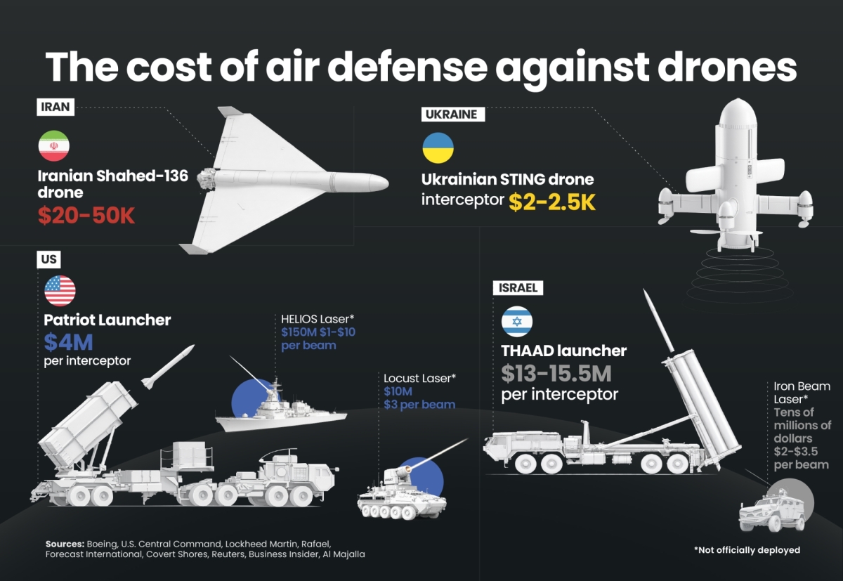 As a result, lower-cost interception solutions are gaining traction. Ukrainian interceptor drones, including the STING system, are designed specifically to counter one-way attack drones at a fraction of the cost. With unit prices estimated between $2,000 and $2,500 and the ability to be produced at scale, these systems offer a more economically sustainable approach to air defence.