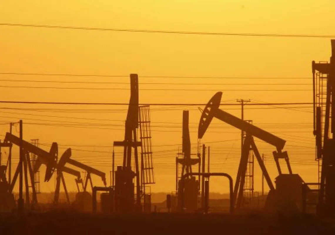 [caption id="attachment_55250503" align="alignnone" width="620"] Pump jacks are seen at dawn in an oil field over the Monterey Shale formation where gas and oil extraction using hydraulic fracturing,…