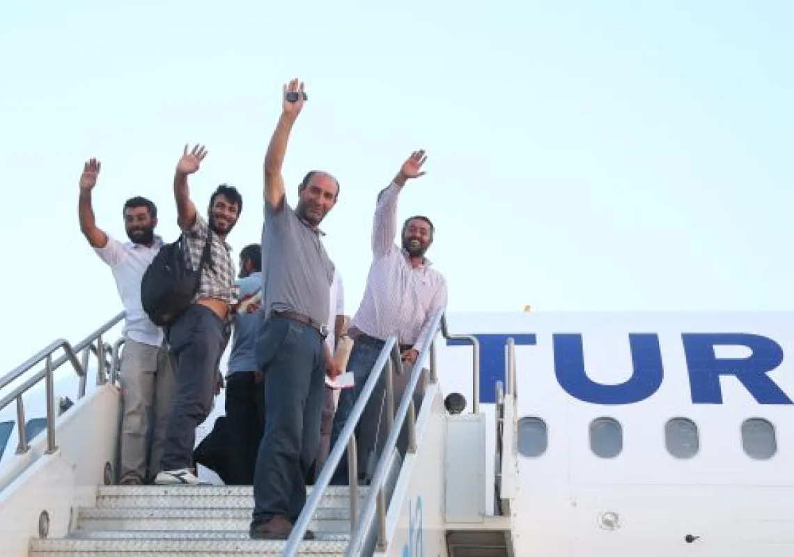 [caption id="attachment_55250496" align="alignnone" width="620"] Freed Turkish truck drivers board a Turkish Airlines private plane to depart from Erbil International Airport to Turkey's Şanlıurfa on…