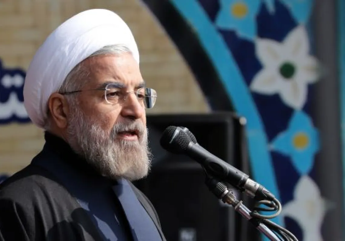 [caption id="attachment_55250364" align="alignnone" width="620"] Iranian President Hassan Rouhani delivers a speech during a rally in Tehran's Azadi Square (Freedom Square) to mark the 35th…