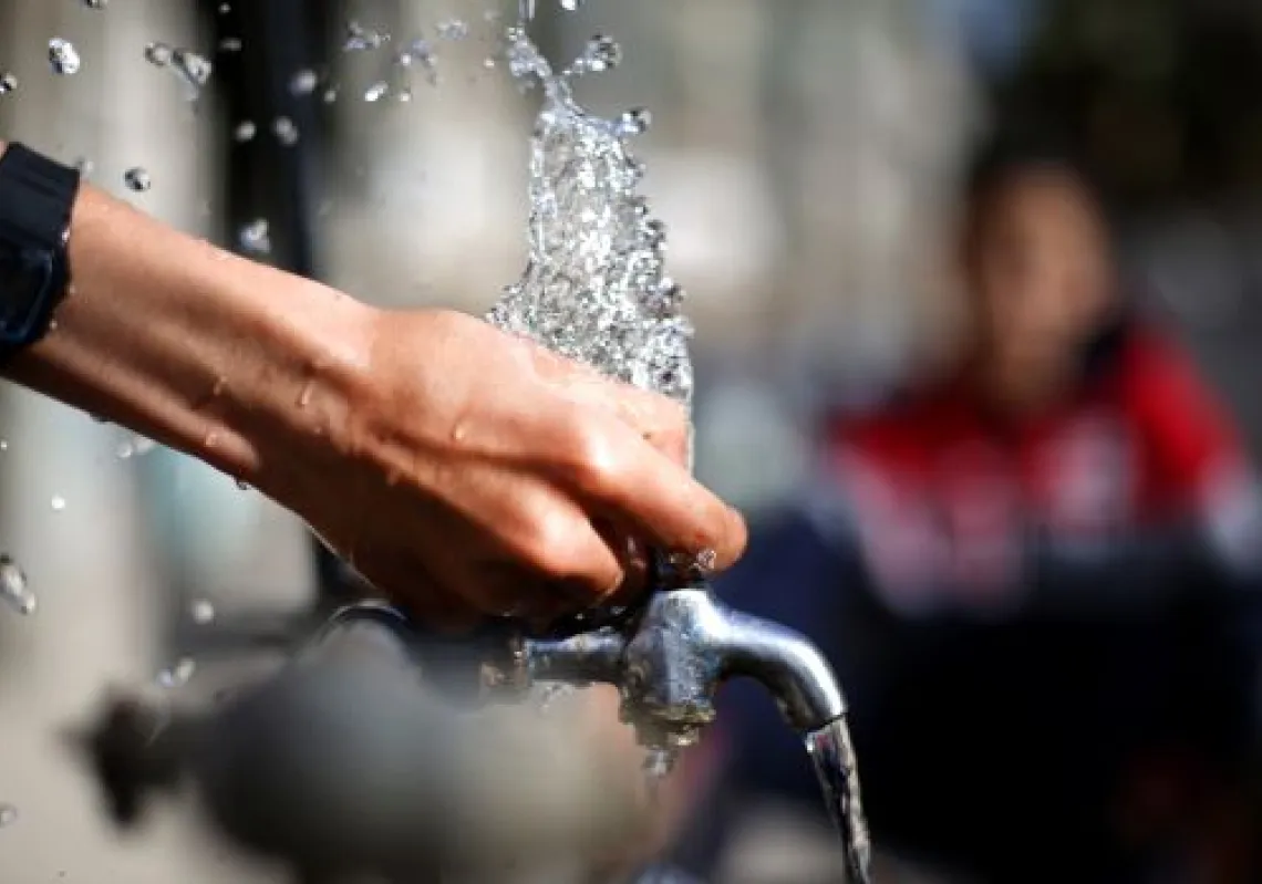 [caption id="attachment_55250331" align="alignnone" width="620"] A Palestinian boy squirts water from a tap in the street on March 20, 2014 as the construction of a major seawater desalination plant…