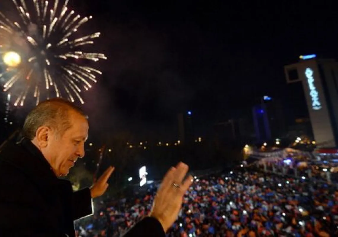 [caption id="attachment_55249327" align="alignnone" width="620"] Turkey's Prime Minister Recep Tayyip Erdoğan greets supporters from the balcony of the Justice and Development Party headquarters in…