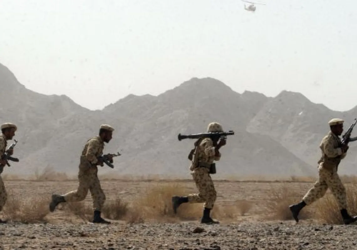 [caption id="attachment_55249290" align="alignnone" width="620"] Iranian soldiers participate in military manoeuvres at Sistan-Baluchestan province, some 50 kms east of city of Zahedan near the…