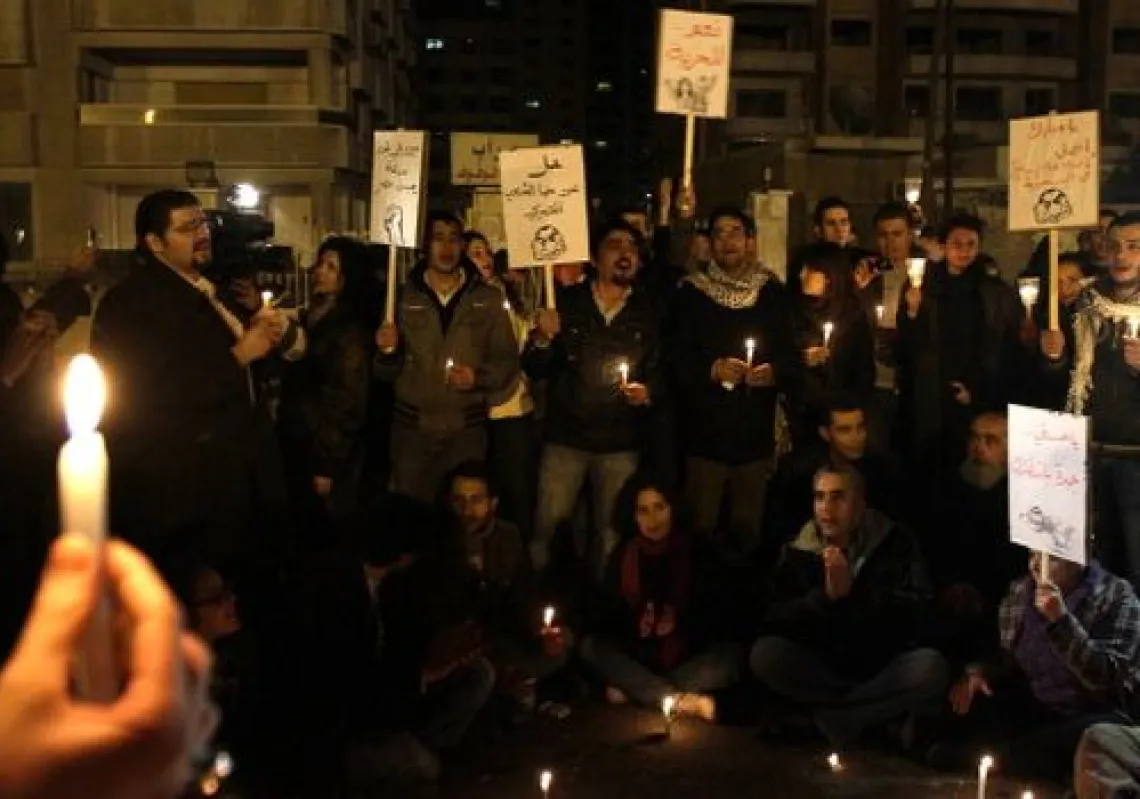 [caption id="attachment_55248824" align="alignnone" width="620"] Syrians hold candles during a vigil outside the Egyptian embassy in Damascus in support of anti-Mubarak protestors on January 29, 2011…