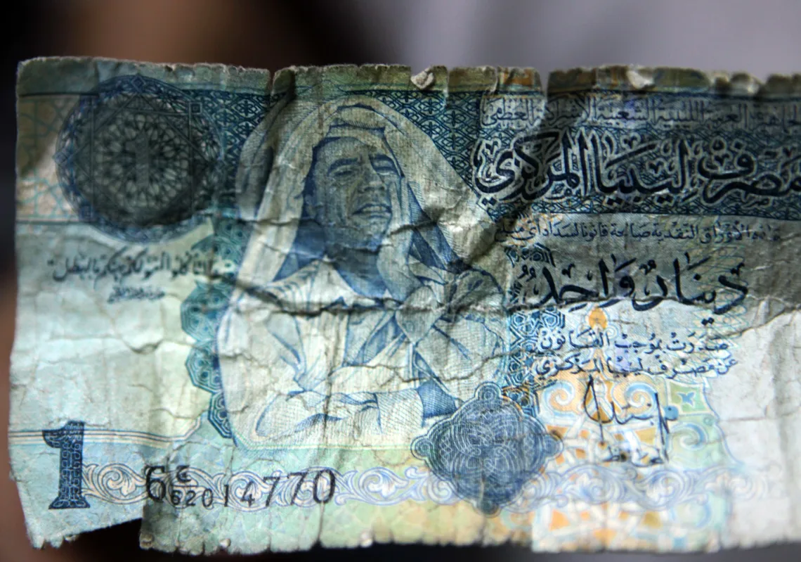 [caption id="attachment_55248532" align="alignnone" width="620"] Picture of a Libyan Dinar banknote bearing a portrait of former leader Moamer Gaddafi is pictured in Tripoli on September 8, 2011. …