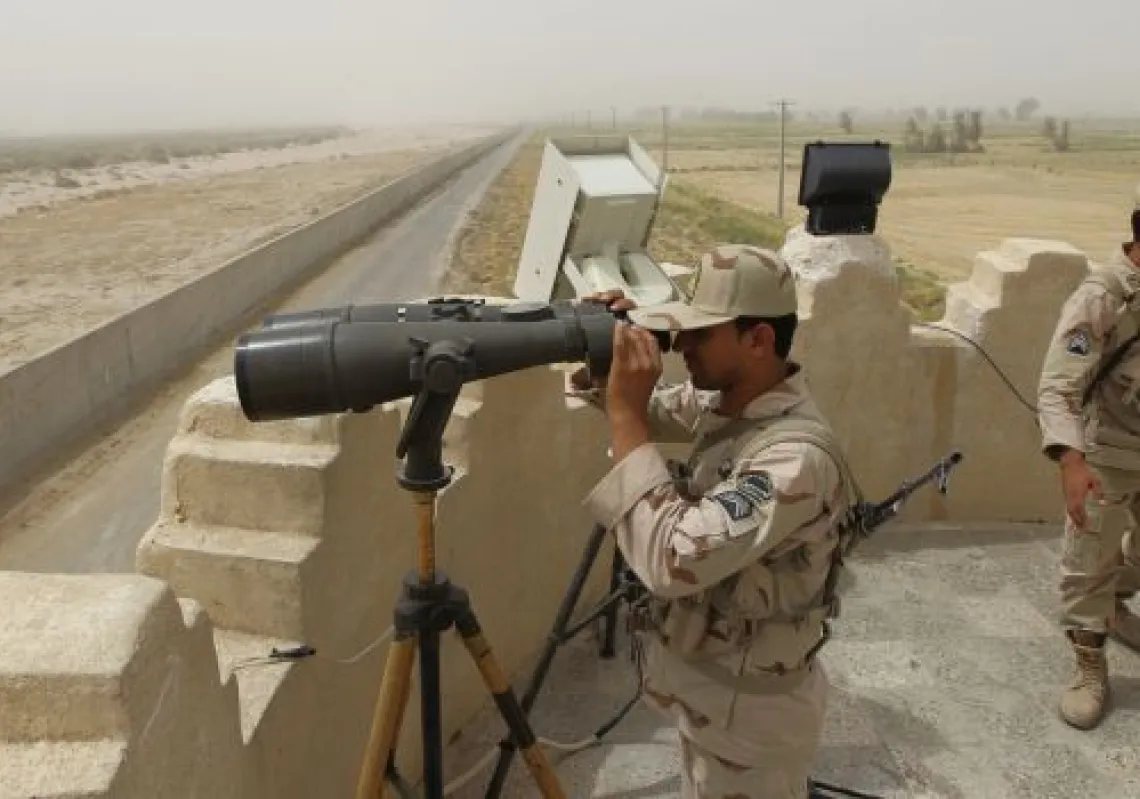 [caption id="attachment_55246456" align="alignnone" width="620"] An Iranian border guard looks through a pair of binoculars to monitor a border area for drug trafficking activities on July 19, 2011,…
