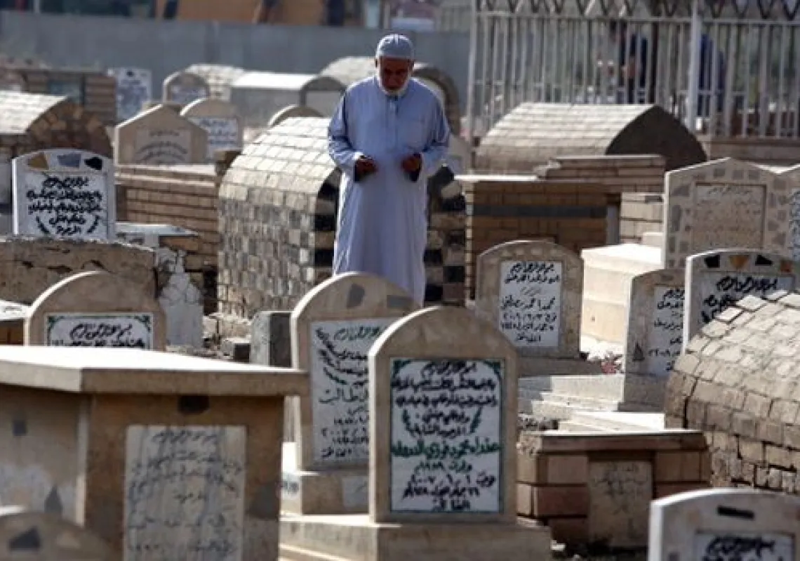 [caption id="attachment_55246244" align="alignnone" width="620"] An Iraqi man visits the grave of a loved one at a cemetery in the capital, Baghdad, during the first day of the Muslim Eid Al-Adha…