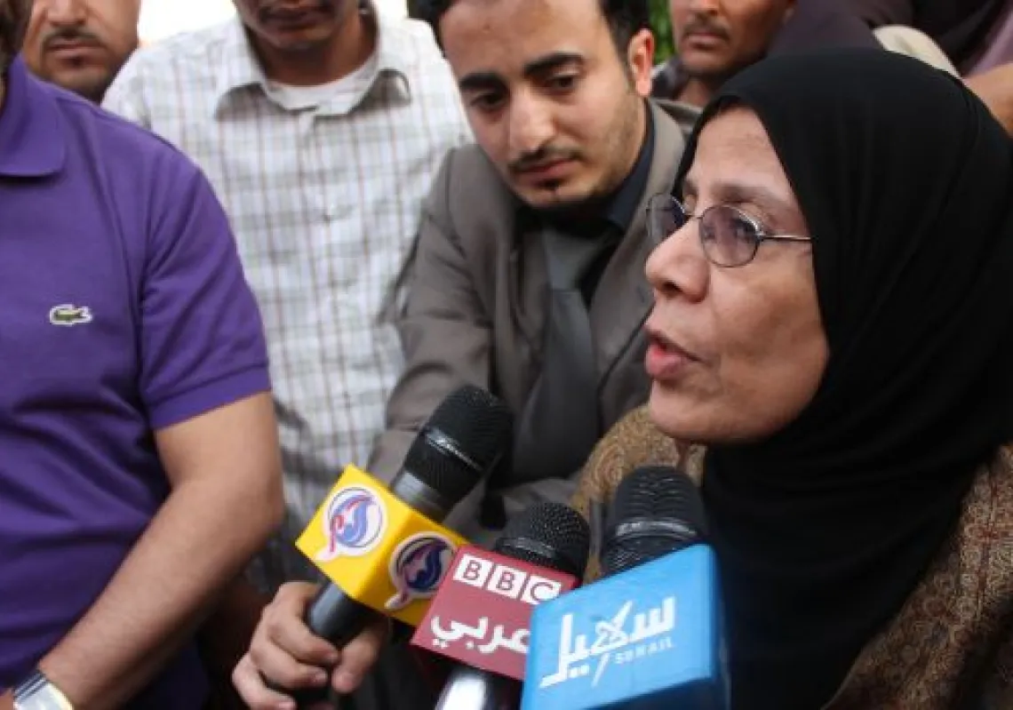[caption id="attachment_55246192" align="alignnone" width="620"] Yemen's human rights minister Huriya Mashour answers journalists' questions on June 2, 2013 at the central prison compound in Sana'a,…