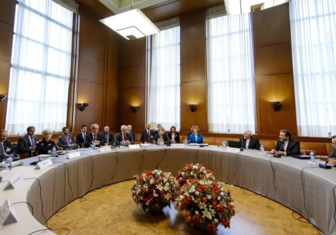 [caption id="attachment_55246183" align="alignnone" width="620"] Iran's and world powers' delegations sit prior the start of two days of closed-door nuclear talks on October 15, 2013 at the United…