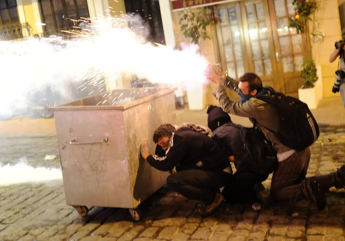 [caption id="attachment_55246072" align="alignnone" width="620"] Protestors use fireworks against policemen during a clash between Turkish police and protestors on Istiklal Avenue on September 10,…