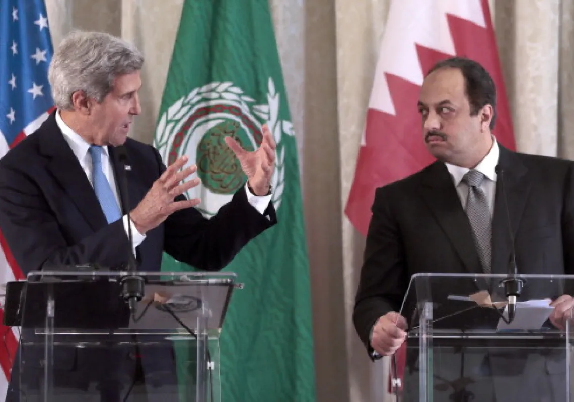 [caption id="attachment_55245523" align="alignnone" width="594"] US Secretary of State John Kerry and Qatar's Prime Minister Khalid bin Mohammad al Attiyah give a joint press conference on September…