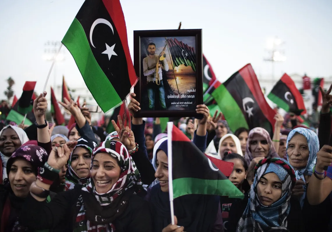 [caption id="attachment_55245409" align="alignnone" width="620"] Libya women wave their new flag during celebrations in the streets of Tripoli following news of Moammar Gaddafi's capture and death…