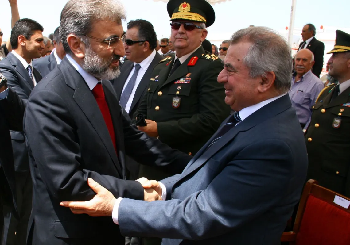 [caption id="attachment_55245471" align="alignnone" width="620"] Turkey's Energy Minister Taner Yildiz greets Irsen Kucuk, former prime minister of the break-away Turkish Republic of Northern Cyprus…