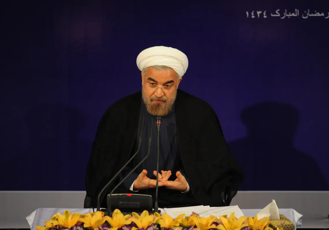 [caption id="attachment_55245335" align="aligncenter" width="620"] Hassan Rouhani holds his first press conference after taking office in front of national and international press in the presidential…
