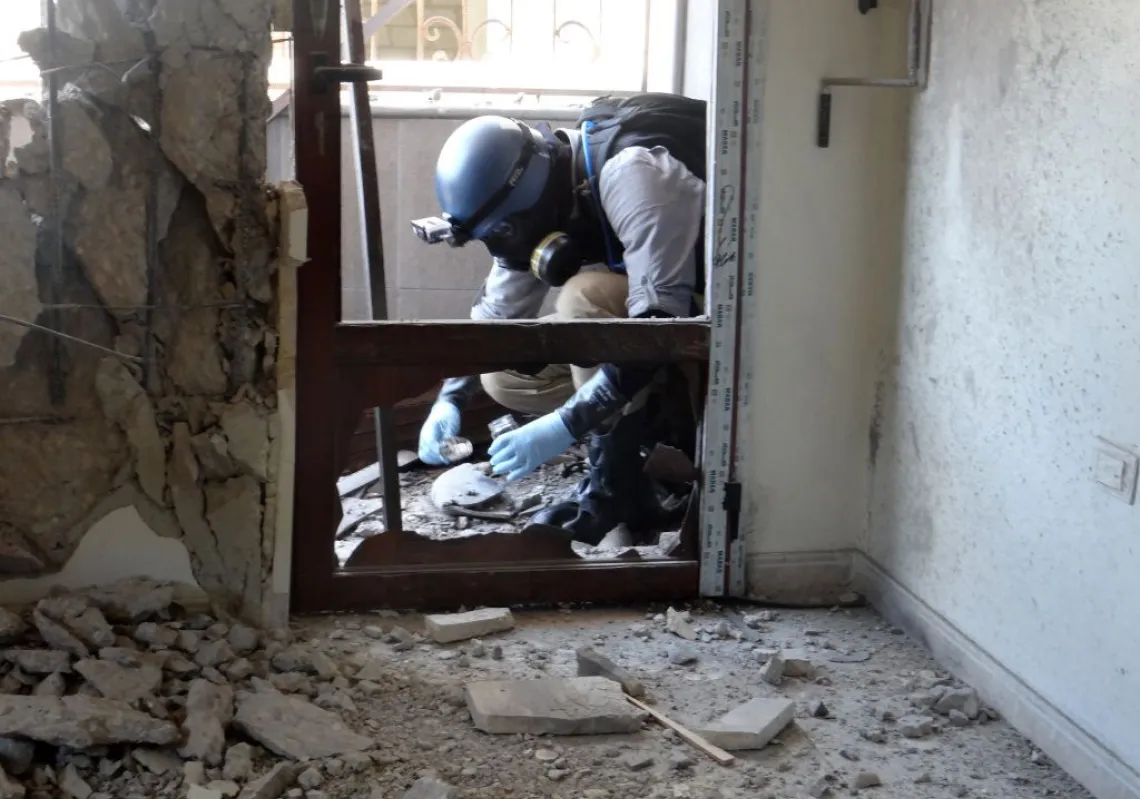 [caption id="attachment_55245354" align="alignnone" width="620"] A United Nations (UN) arms expert collects samples on August 29, 2013, as they inspect the site where rockets had fallen in Damascus'…