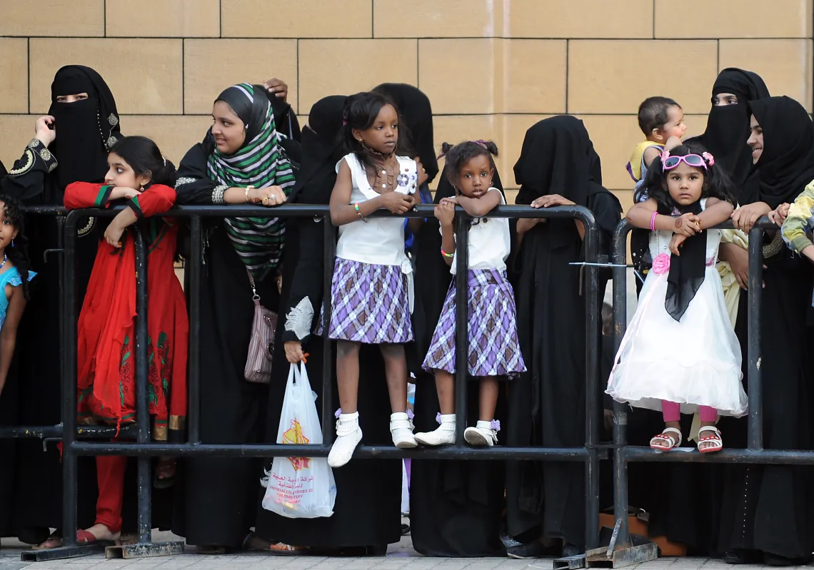 [caption id="attachment_55245272" align="alignnone" width="620"] Saudi women stand behind a fence during a ceremony as part of the morning Eid Al-Fitr prayer at Turki bin Abdullah grand mosque in…