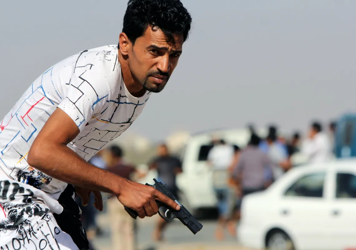 [caption id="attachment_55245164" align="alignnone" width="620"] A Libyan protester holds a gun during clashes between demonstrators and troops of the Libyan Shield Forces (LSF), following a…