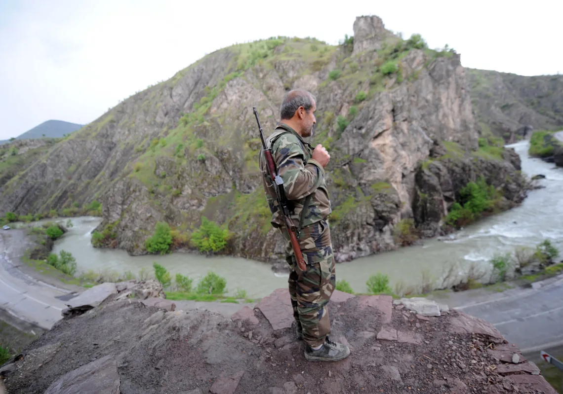 [caption id="attachment_55245131" align="alignnone" width="620"] A village guard holding his rifle on April 10, 2010, in the mountainous southeastern city of Siirt. Dressed in Turkish military…