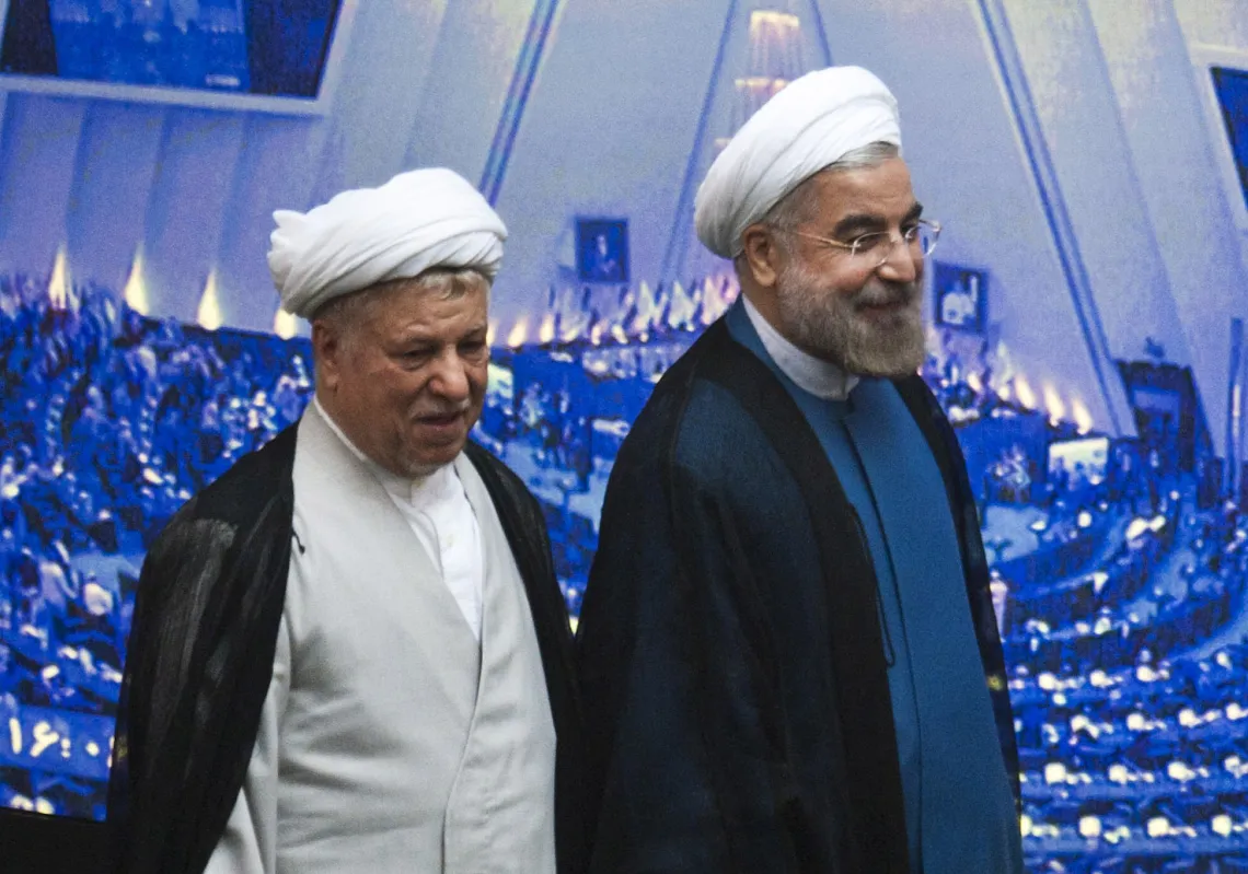 [caption id="attachment_55244700" align="aligncenter" width="620"] Iran's new president, Hassan Rouhani (R), is accompanied by former president Ali-Akbar Hashemi Rafsanjani as he arrives for his…