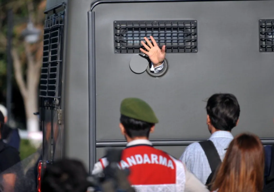[caption id="attachment_55244586" align="alignnone" width="592"] An Ergenekon prisoner being driven in an armored police vehicle waves at protestors on August 5, 2013. (Ozan Kose/AFP/Getty Images)[…