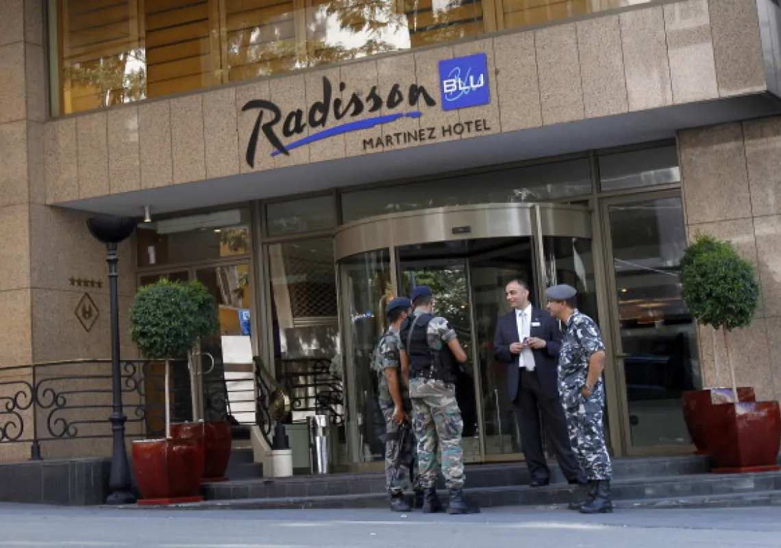 [caption id="attachment_55244667" align="alignnone" width="594"] Lebanese security forces standing guard in front of the Radisson Martinez Hotel in Beirut where members of a Turkish Airlines crew are…