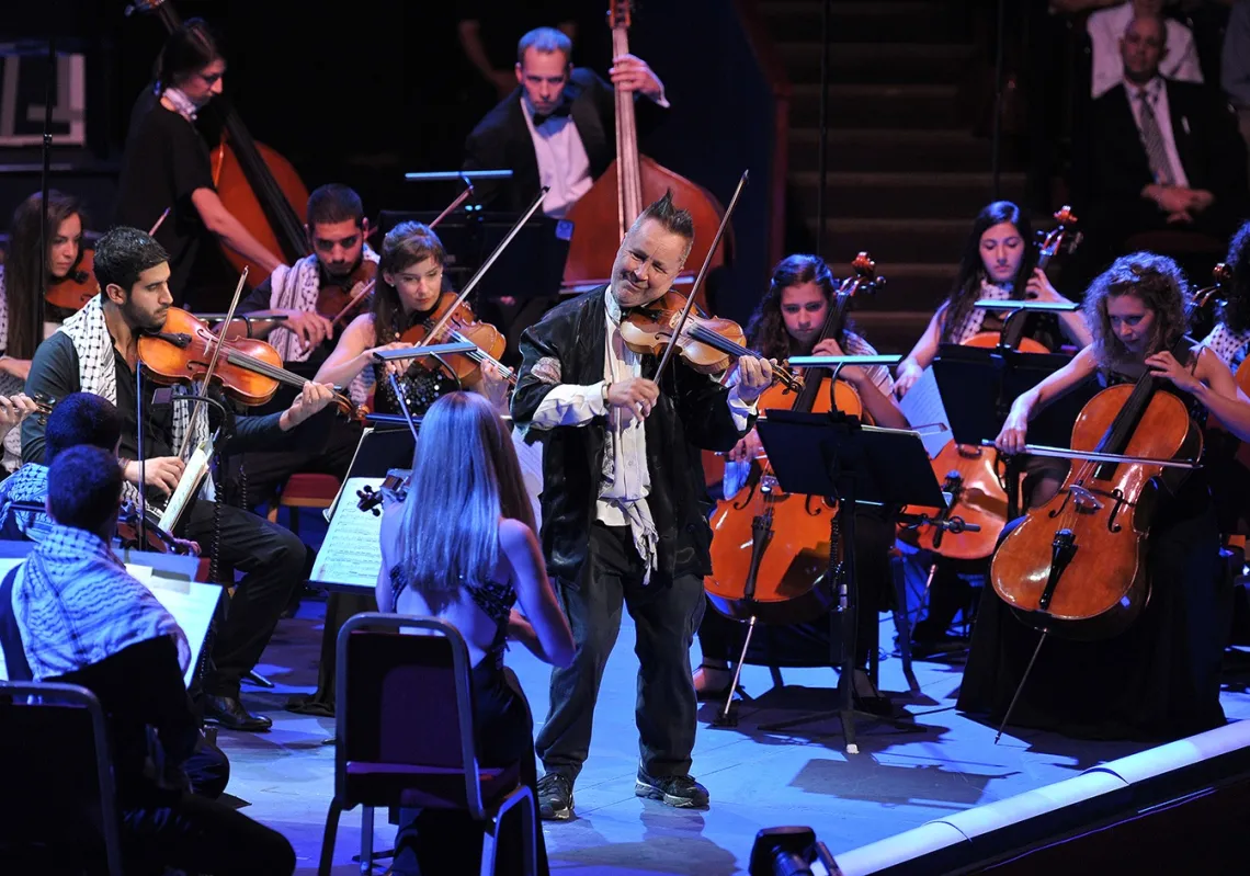 [caption id="attachment_55244555" align="alignnone" width="620"] Nigel Kennedy and the Palestine Strings perform Vivaldi's "The Four Seasons" at the Royal Albert Hall, London on August 8, 2013. …