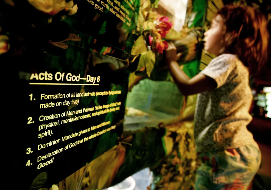 [caption id="attachment_55243324" align="alignnone" width="620"] A child looks at a display at the Museum of Creation and Earth History in Santee, California on August 10, 2005. The museum contains…