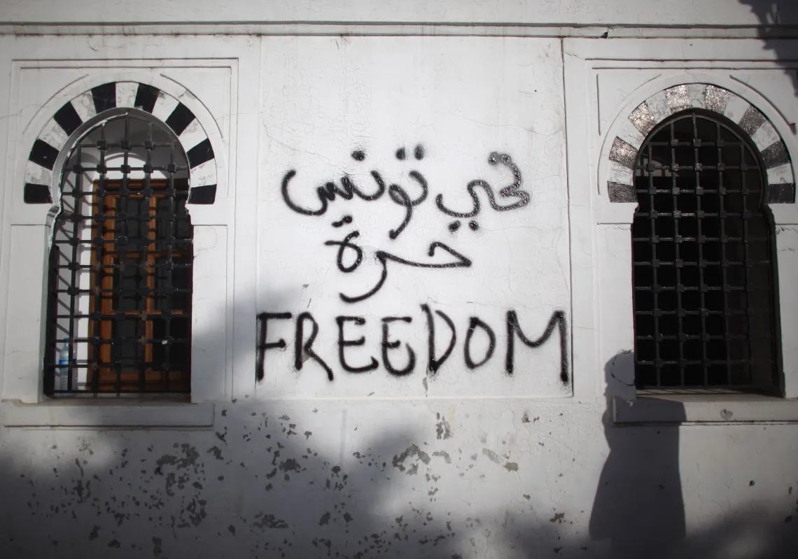 [caption id="attachment_55242902" align="alignnone" width="620"] Grafitti marks the occasion when Tunisians successfully ousted their president Zine El Abidin Ben Ali in January 2011. CHRISTOPHER…