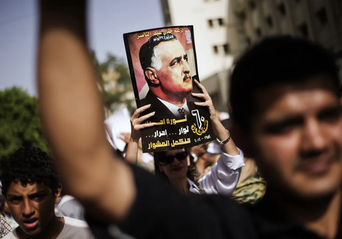 [caption id="attachment_55242831" align="aligncenter" width="620"] An Egyptian protester holds a portrait of former Egyptian president Gamal Abdel Nasser during a march towards Egypt's landmark…