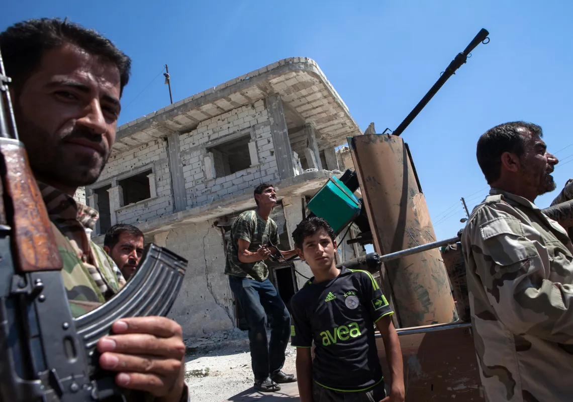 [caption id="attachment_55242680" align="aligncenter" width="620"] A Rebel tries to locate a fighter plane as he stands on top of a anti aricraft gun in the village of Al-Rami, near the town of Ariha…