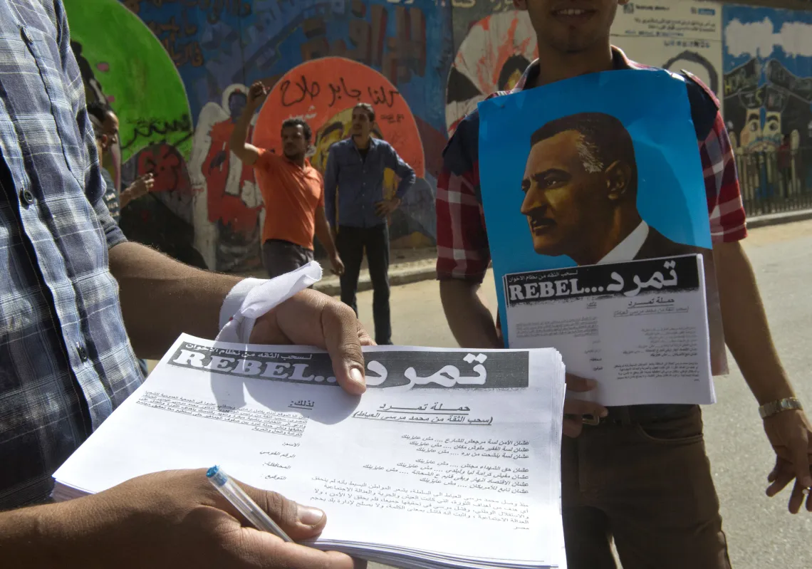 [caption id="attachment_55242347" align="alignnone" width="620"] An Egyptian man distributes a petition sheet for Tamarod's campaign on May 17, 2013. (KHALED DESOUKI/AFP/Getty Images)[/caption]
