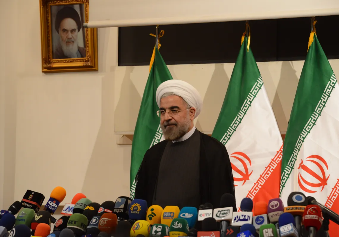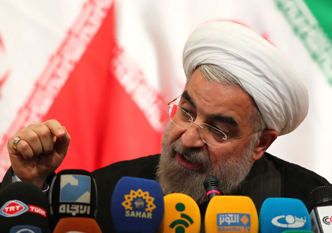 [caption id="attachment_55242538" align="alignnone" width="620"] Iran's president elect Hassan Rouhani speaks during his first press conference after being elected on June 17, 2013 in Tehran, Iran…