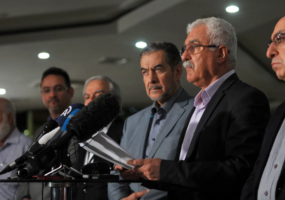 [caption id="attachment_55242224" align="alignnone" width="620"] Acting president of the Syrian National Coalition (SNC) George Sabra (2nd-R) attends a press conference at the end of the SNC meeting…
