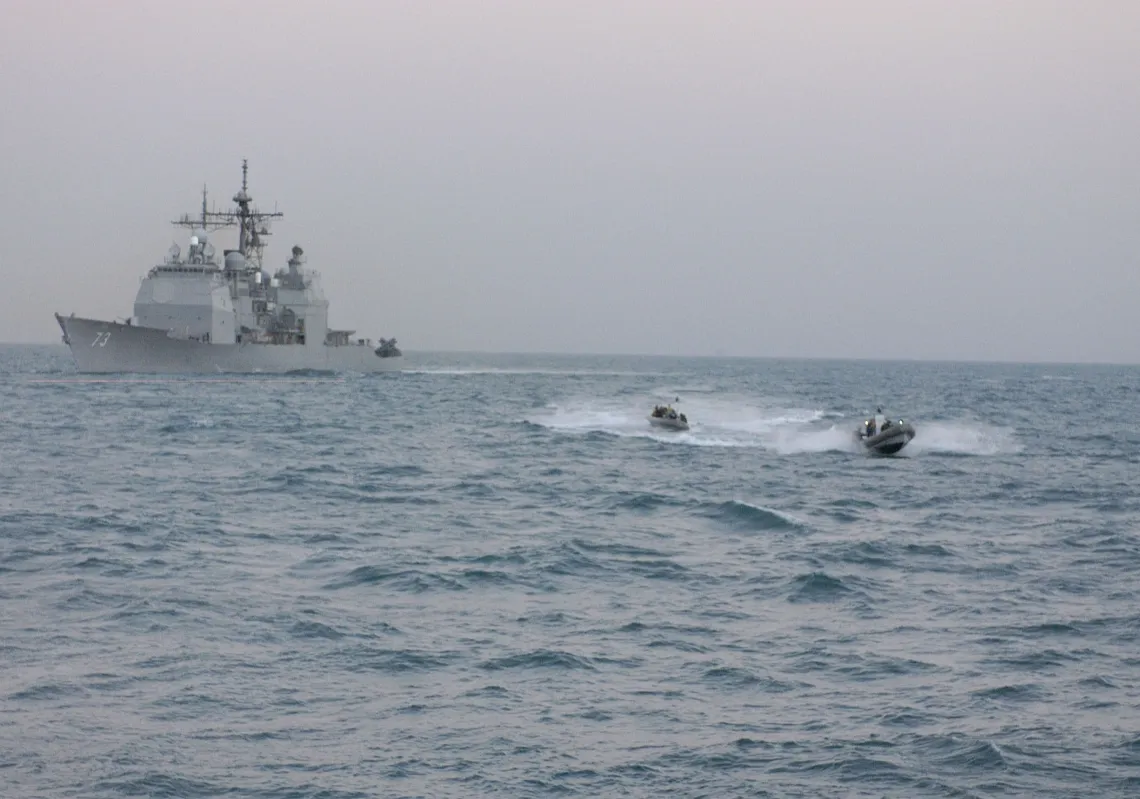 [caption id="attachment_55242028" align="aligncenter" width="620"] In this handout image provided by the U.S. Navy, Marines assigned to the 13th Marine Expeditionary Unit, practice boarding and…