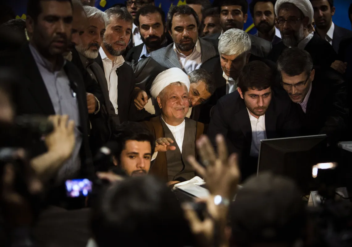 [caption id="attachment_55241505" align="aligncenter" width="620"] Former Iranian president Akbar Hashemi Rafsanjani (C) registers his candidacy for the upcoming presidential election at the interior…