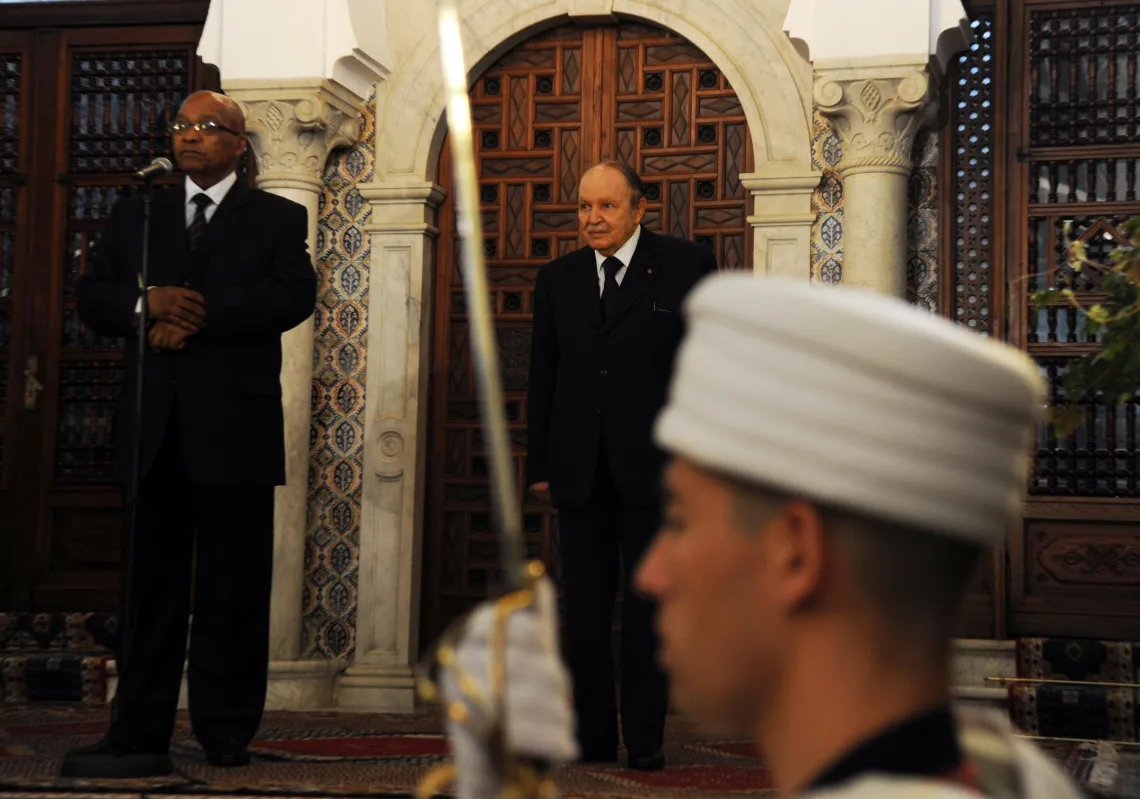 [caption id="attachment_55241456" align="alignnone" width="620"] Algerian President Abdelaziz Bouteflika listens as his South African counterpart Jacob Zuma (L) speaks upon the latter's arrival at…